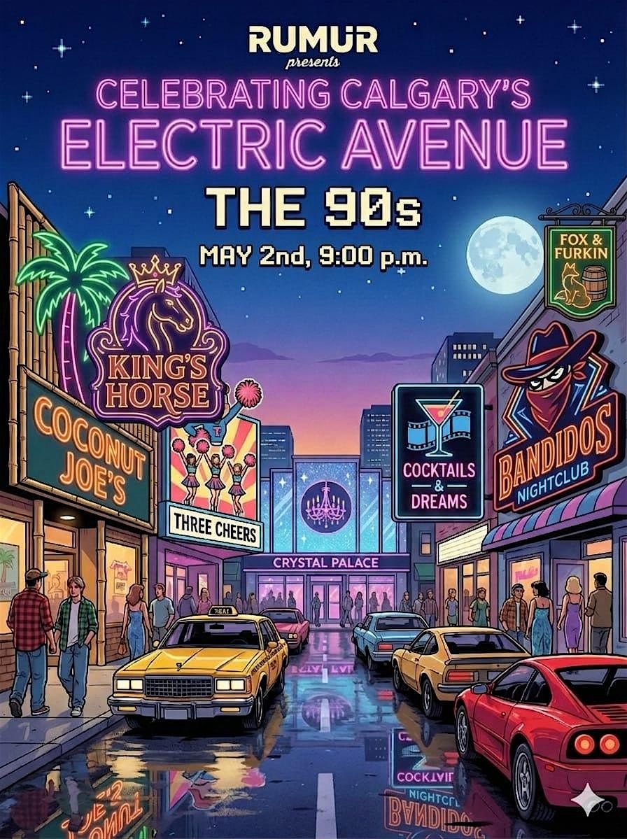 Prepare to be transported back to the golden era of Calgary's night scene, because RumuR is proud to present a night on Electric Avenue! Join us for an unforgettable revival as we relive the electrifying energy that defined a generation on this famous street.