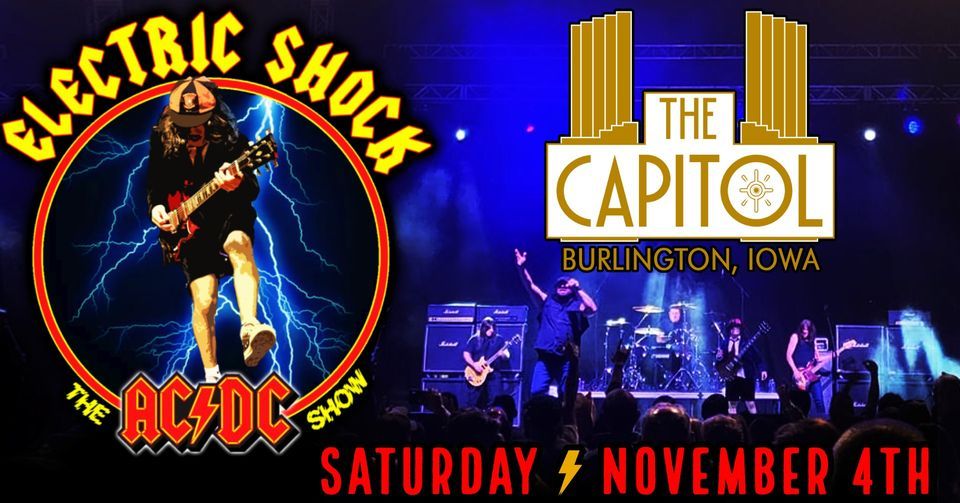 For those about to rock! The Capitol Theater in Burlington, Iowa welcomes Electric Shock The AC/DC Show live on Saturday, November 4th! Tickets are on-sale now at https://www.burlingtoncapitoltheater.com/ Since 2014, ELECTRIC SHOCK has been perfecting the AC/DC show with a high energy performance, faithfully replicating AC/DC both musically and visually, proving they are the nation's #1 AC/DC show! Playing all the classic hits and deeper cuts from both Bon Scott and Brian Johnson eras! This show is not just a tribute, but an experience that will give you the look, feel and sound like you are witnessing an actual AC/DC concert!
