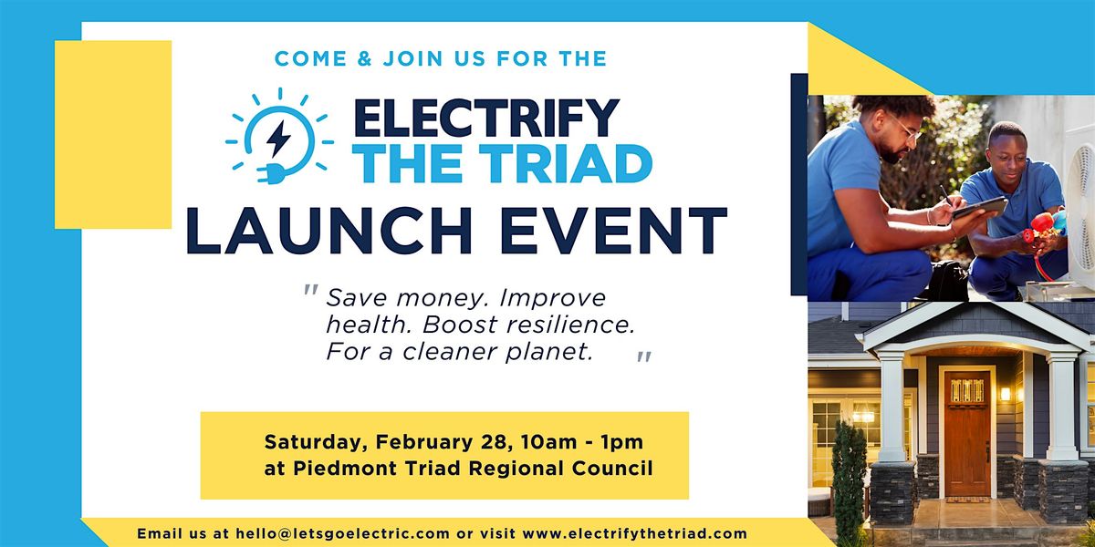 Come one, come all, and get ready to celebrate the start of our new community electrification program Electrify the Triad at our upcoming launch event! Join us at the Piedmont Triad Regional Council office on February 28, 2026 from 10AM TO 1PM for a mingling period followed by light refreshments and a presentation .