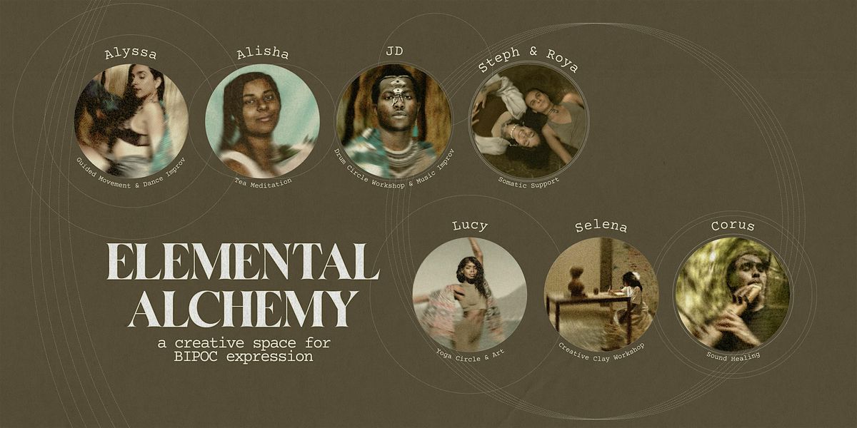 A Creative Holistic Jam and Restful Space for BIPOC Expression. Join us for Elemental Alchemy, a creative holistic jam created for BIPOC Wellness—a nourishing space to rest, release, and reconnect to our roots through sound, clay, movement, somatics, rhythm, and community.