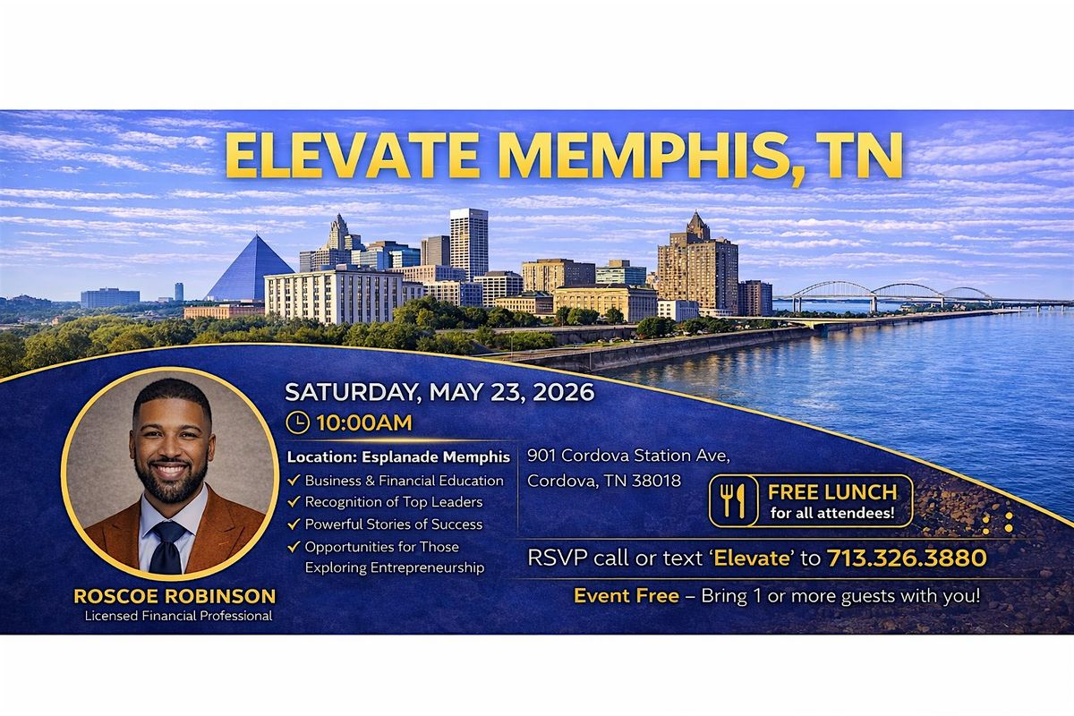 Elevate Memphis is a dynamic event designed to inspire growth, leadership, and financial awareness within the community. Taking place on Saturday, May 23, 2026, at 10:00 AM at the Esplanade Memphis, this experience brings together individuals who are ready to expand their mindset and explore new opportunities. Attendees will gain valuable insights through business and financial education, hear powerful stories of success, and witness recognition of top leaders who are making an impact.