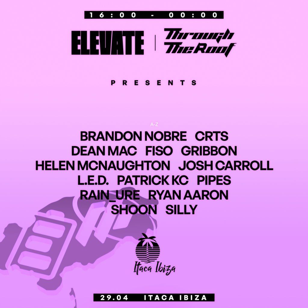 Elevate & Through the Roof return to Ibiza for a week filled with events with some huge names along with some of Scotlands finest talent.Music Genres : House