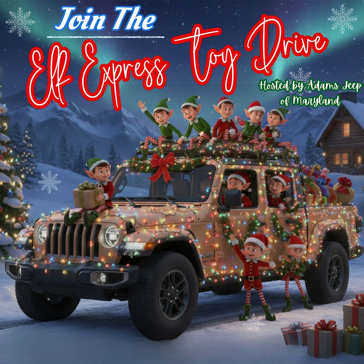 All aboard for giving! Join Adams Jeep for The Elf Express Toy Drive, a heartwarming holiday shopping event supporting Toys for Tots with the US Marine Corps.