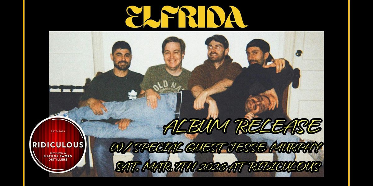 Elfrida is an indie pop-rock band born between Hamilton and the Greater Toronto Area, blending the warmth of vintage rock with the bite of modern indie pop—familiar hooks, journal-cut lyrics, and grooves that linger long after the lights go out. What began as recordings between songwriters Sandro Mastromatteo and Matt Kristan grew into a full-force band with the addition of Gordon Bosiljevac, Matt Del Conte, and Adam Filice, whose combined chemistry shaped their debut album Cold, Drunk, and Stoned. Named after the place where it all quietly began, Elfrida carries its past into every song—while writing firmly toward what’s next.