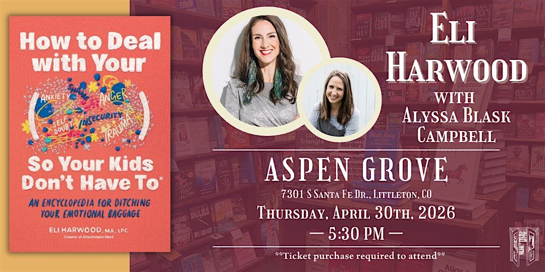 Join us as we celebrate local author Eli Harwood's new book, How to Deal with Your ____ So Your Kids Don't Have to: An Encyclopedia for Ditching Your Emotional Baggage in conversation with the author of Tiny Humans, Big Emotions, Alyssa Blask Campbell on Thursday, April 30th at 5:30 PM at our Aspen Grove location!