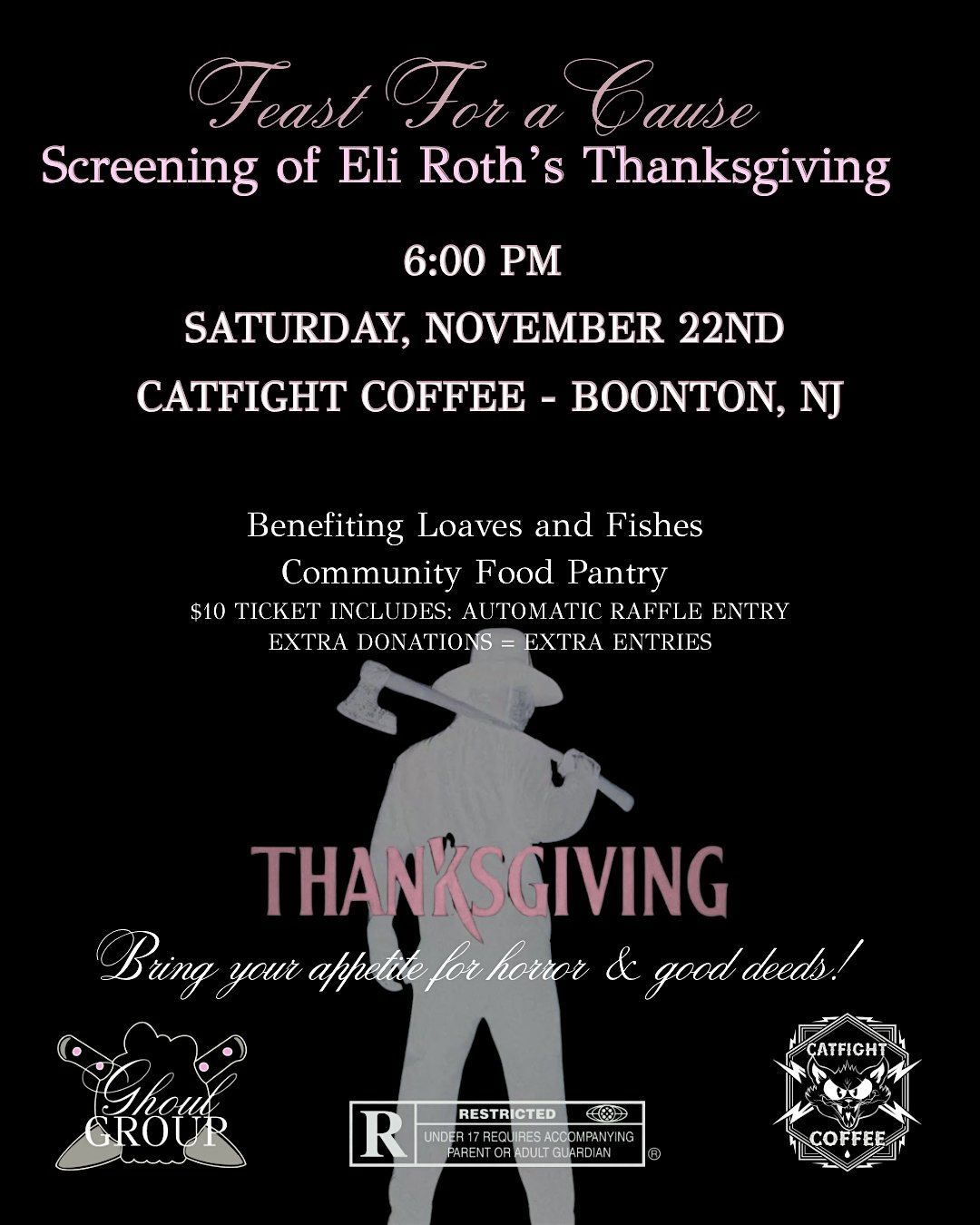 join us saturday, november 22nd for a thanksgiving (2023) screening at catfight coffee in boonton.