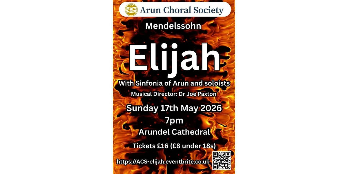 Arun Choral Society presents Mendelssohn's magnificent oratorio Elijah on Sunday, 17th May 2026 at 7:30pm in the stunning surroundings of Arundel Cathedral.