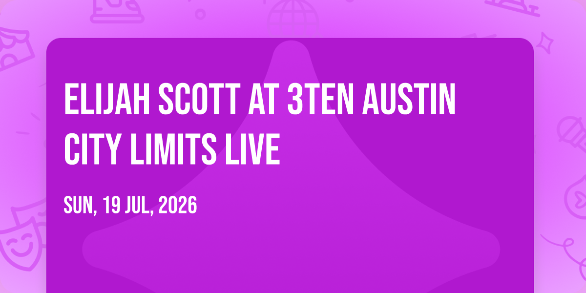 ✨ Enter a world of endless possibilities at Elijah Scott at 3TEN Austin City Limits Live, where every moment tells a story! 🏛️ The stunning 3TEN Austin City Limits Live in vibrant Austin, TX transforms into a realm of wonder on July 19th, 2026 at 08:00 PM. 🌟 They have crafted an experience that goes beyond the ordinary, combining elements of surprise, delight, and pure entertainment. Every detail has been thoughtfully considered to ensure your journey with us is nothing short of extraordinary. 🎯 Join fellow adventure seekers and memory makers in this celebration of imagination and innovation. 🎊 Reserve your spot today and be part of something truly special!