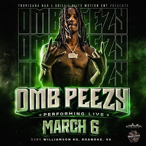Get ready to vibe with OMB Peezy at Tropicana Bar & Grill performing live - it's gonna be lit!