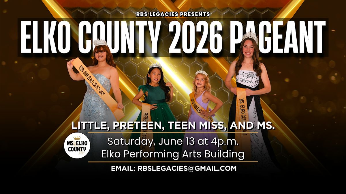 Join us to celebrate the beautiful and talented girls and women of Elko County, Nevada, for the Elko County 2026 Pageant at the Elko Performing Arts Building. Witness as Bexley Oros, Elizabeth Bernabe, Isabelle Roman, and Caitlin Cromwell crown their successors.