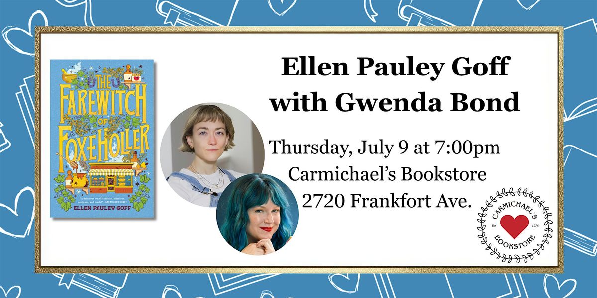 Ellen Pauley Goff (she/her) was born and raised in the wilds of Kentucky. Her short fiction has appeared in the Indiana Review, Hunger Mountain, F(r)iction, and New Millennium Writings, among others. Her poetry can be found in the Atlanta Review, and her creative nonfiction in The Inquisitive Eater and Karma Comes Before. Ellen received her BA from the University of Chicago and her MFA dual degree in fiction and writing for children and young adults from The New School. When she’s not writing or reading recipes, Ellen works in publishing and international rights. She is also the founder of a longstanding writing workshop and critique group in Manhattan, with the goal of providing publishing knowledge to emerging writers. The Farewitch of Foxe Holler is her debut novel.Gwenda Bond is the New York Times bestselling author of many novels, including the first official Stranger Things novel, Suspicious Minds, as well as the Match Made in Hell, Lois Lane, and Cirque American series. She lives in a hundred-year-old house in Lexington, Kentucky, with a veritable zoo of adorable doggos and queenly cats. She writes a regular newsletter, Dear Reader, available on Substack.
