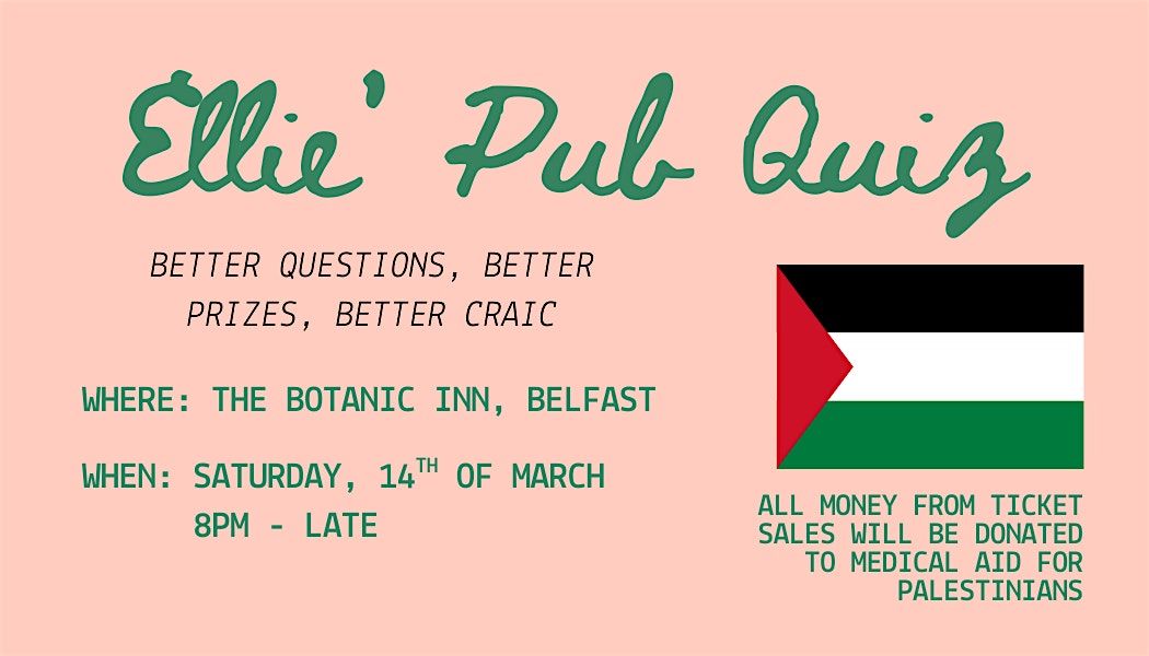 And if I'm hosting another Pub Quiz then all of the money raised will be donated to a charity doing amazing work in Palestine. All money will be donated to the charity Medical Aid for Palestinians. This charity works tirelessly to provide health care and dignity to Palestinians who are being denied basic rights, even providing emergency responses to those in need.