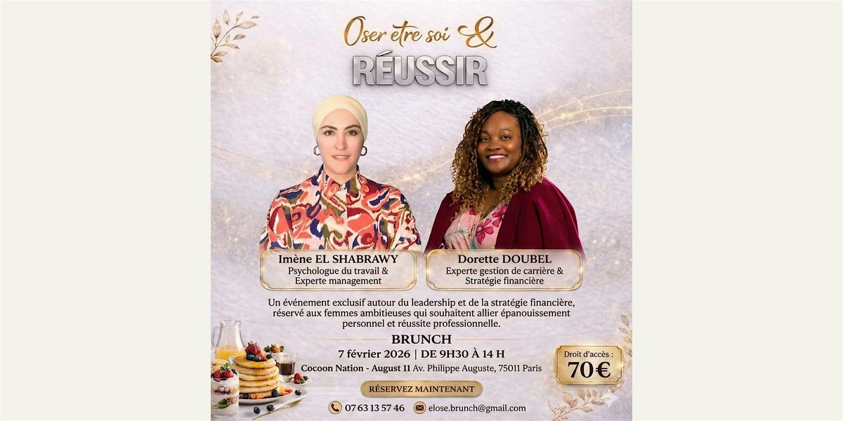 Cet événement est né de la collaboration entre Dorette DOUBEL, experte en gestion de carrière et stratégie financière, et Imène SHABRAWY, psychologue du travail et experte en management, qui ont uni leurs expertises pour proposer une journée d’accompagnement, de réflexion et de passage à l’action.