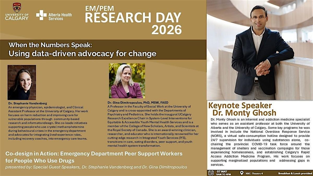 Join us at the Health Sciences Centre - Theatre 4 on May 7, 2026 at 8:00 AM (MT) for a day full of exciting research presentations and networking in Emergency Medicine and Pediatric Emergency Medicine. Whether you're a student, researcher, or just curious, it's a great chance to learn and connect with others in a relaxed setting. Don’t miss out on the latest in EM/PEM research and some great conversations!