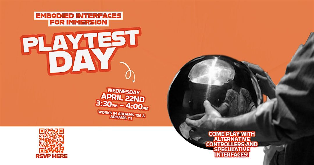Now’s your chance to find out! Join us for a playtest day of the projects developed in Embodied Interfaces for Immersion, where you can explore hands-on experiments and test unconventional interfaces. No prior experience needed. Just bring your curiosity and a healthy sense of adventure.