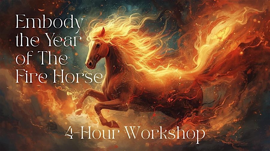 On the evening of the Lunar New Year, you’re invited to step into the bold, luminous energy of the Fire Horse, a rare and potent force that arrives only once every sixty years. This transformational workshop offers a sacred space to connect with the spirit of 2026: a year that asks us to awaken our courage, trust our creative spark, and move with clarity and purpose. Through reflection, ✨ritual, ✨sound healing, and ✨community connection, we’ll explore how this dynamic year ignites personal growth and collective transformation.