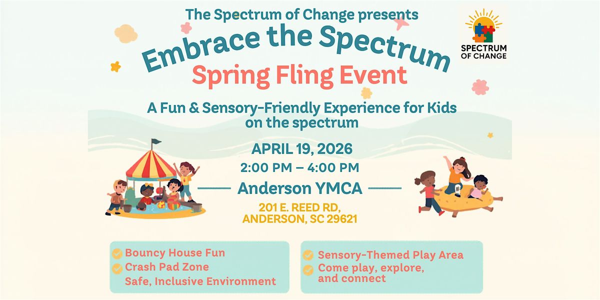 Join us for the Embrace the Spectrum Spring Fling, a fun and inclusive celebration designed especially for children with autism and sensory needs. This event will be held in a private room at the YMCA, thoughtfully curated to provide a safe, calming, and engaging environment.