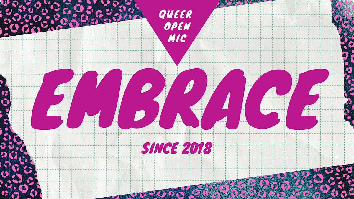 You’re invited to the next edition of Embrace, the longest-running queer open mic in Toronto! Free, all-ages, and any art form, from first draft to old favourites. It’s a place where your creativity is held and celebrated!