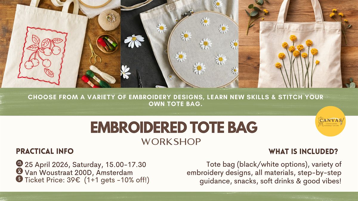 Looking for a cozy, creative afternoon in Amsterdam? Join our embroidery workshop and stitch your own embroidered tote bag: a mindful, relaxing activity that’s perfect for beginners!