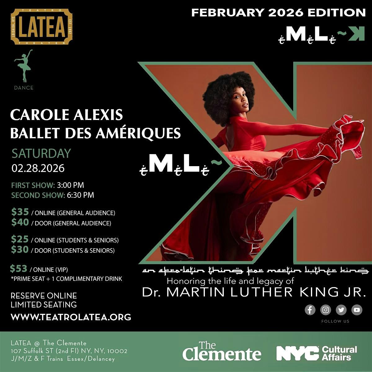 Ballet des Amériques / Carole Alexis Ballet Theatre are delighted to return to Teatro LATEA for eMeLe-K – “an Afro-Latin thing for Martin Luther King.”