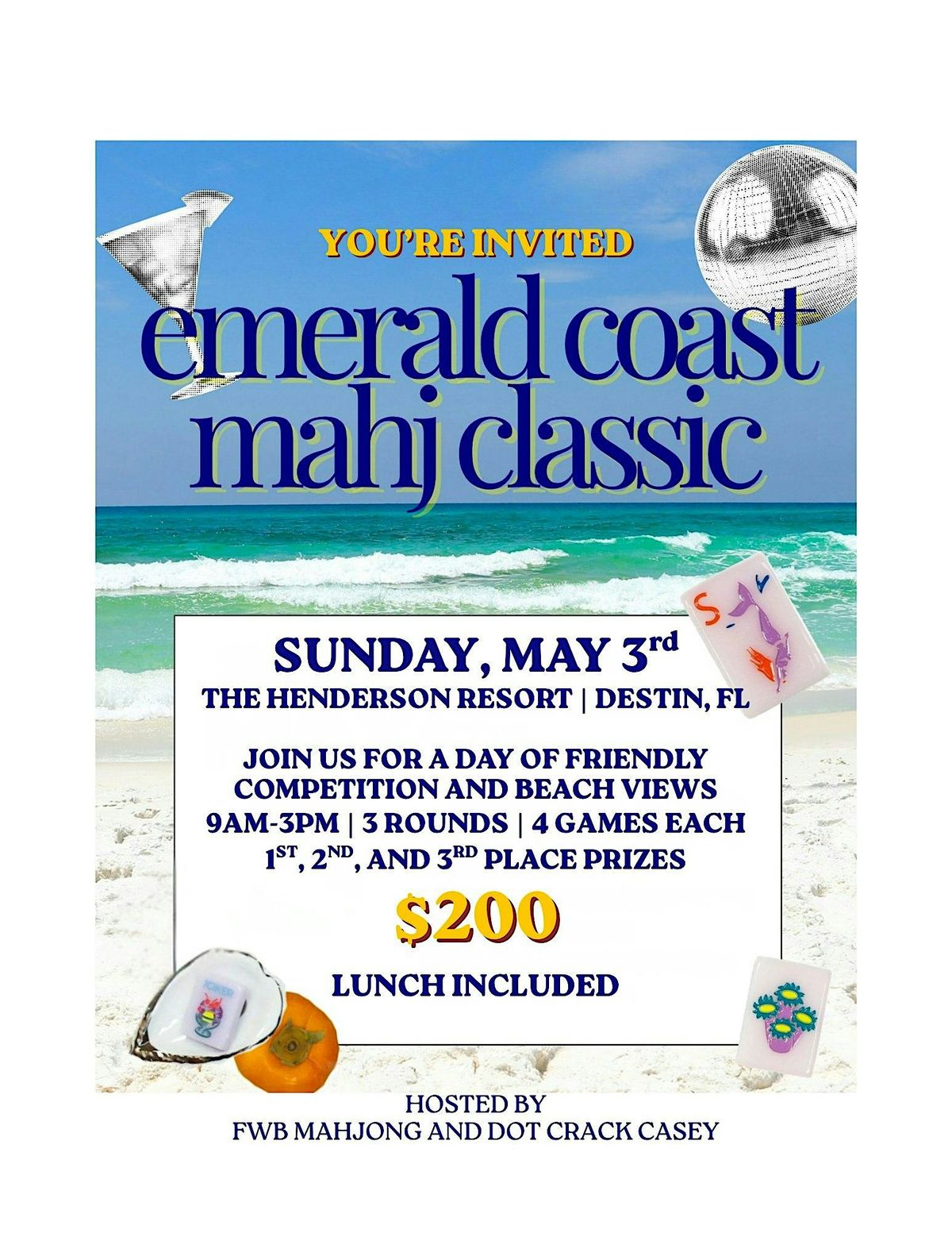 Bring your NMJL card, your mahj crew (or come solo!), and get ready for a fantastic day of tiles, strategy, and coastal fun.