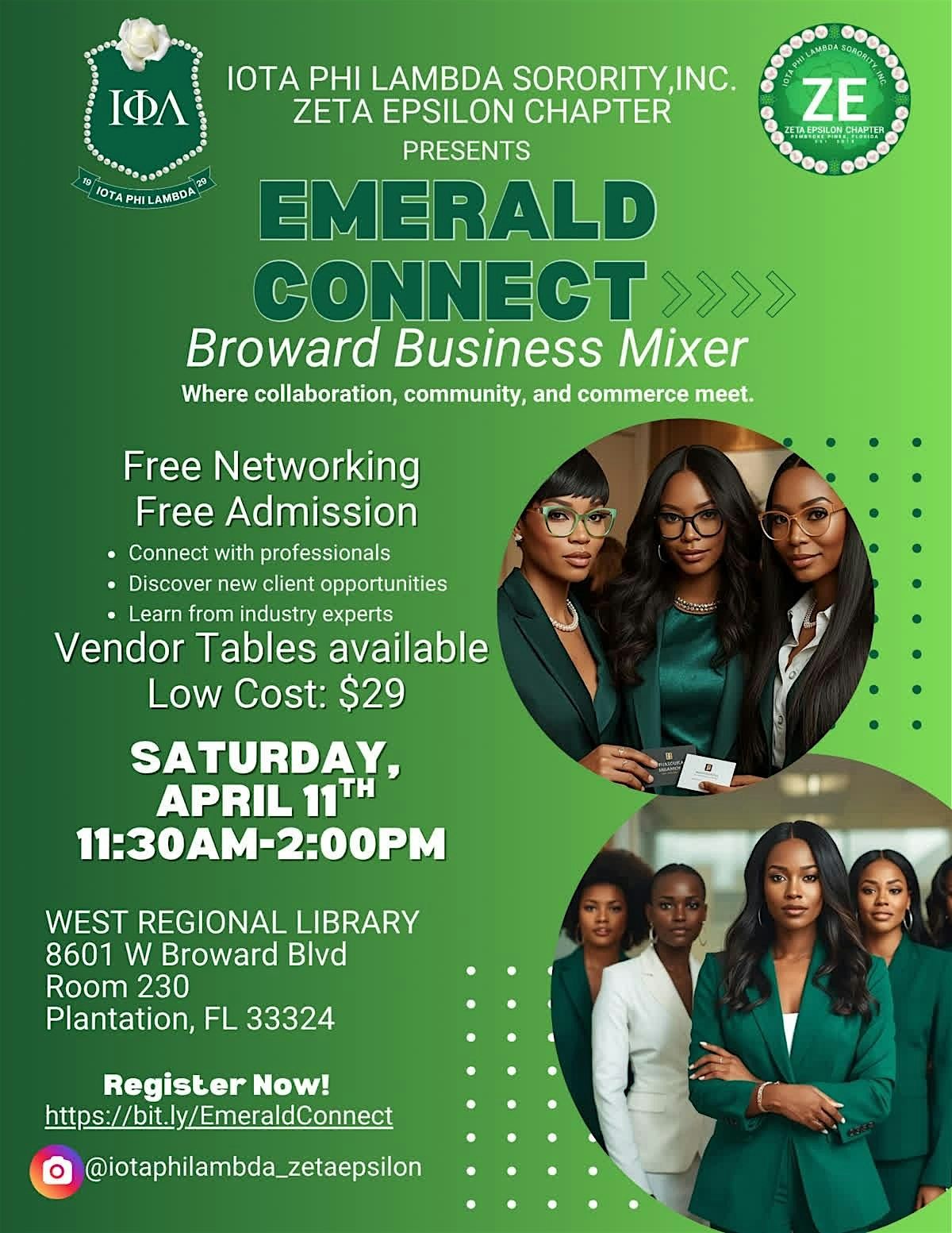 Ready to meet cool folks and grow your network? Emerald Connect is the place to be! This in-person event is all about connecting Broward’s business community in a relaxed and fun setting. Whether you're looking for new partnerships, fresh ideas, or just some great conversations, we've got you covered. Don’t miss out on the chance to mingle, share, and build real connections. See you there!