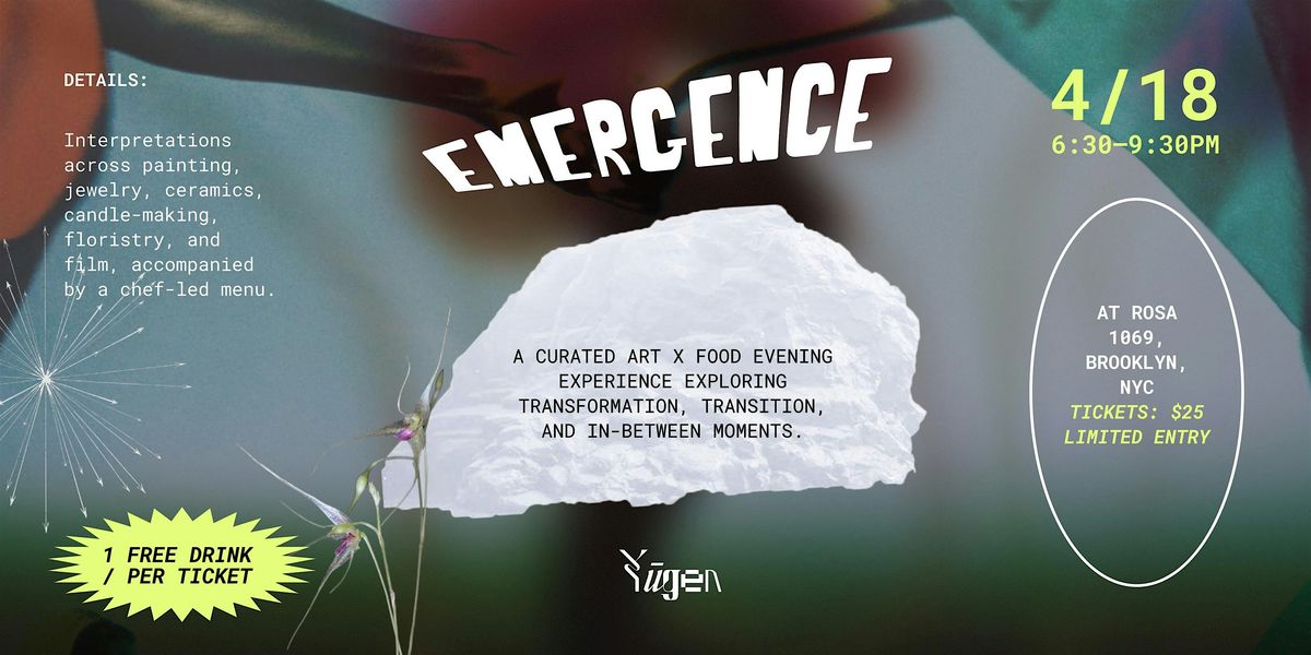 Emergence is a curated evening experience bringing together art, food and atmosphere in an intimiate Brooklyn setting. A show with differetent interpretations of transformation-through objects, visuals, and taste.