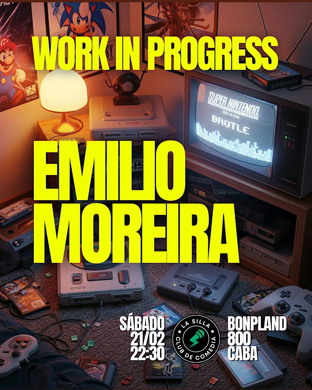 "WORK IN PROGRESS" es un show donde Emilio González Moreira muestra su nuevo monólogo que está en plena construcción. Verdades personales, historias dignas de ser contadas y una mezcla exquisita de años de comedia, gaming y videojuegos d elos de antes.