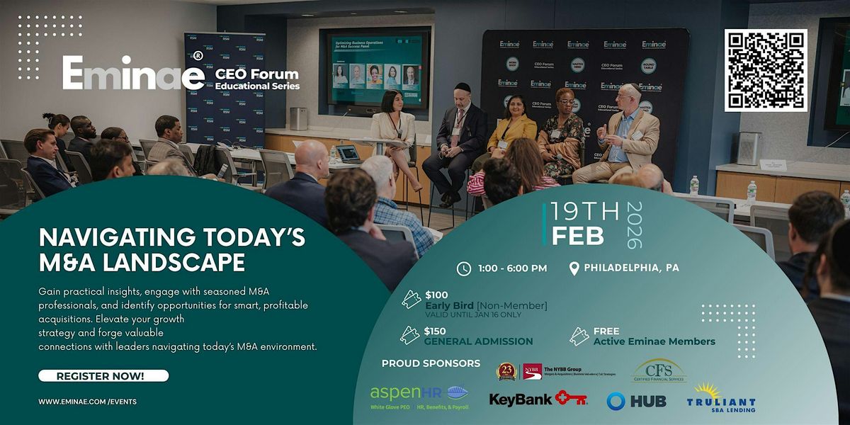 The Eminae CEO Forum brings together business owners, CEOs, investors, lenders, and deal professionals for a focused, high-level conversation on the realities of today’s M&A market. This forum is designed for leaders who want practical insight into how deals are financed, how value is determined, how exits intersect with personal and business planning, and what buyers are actually looking for right now.