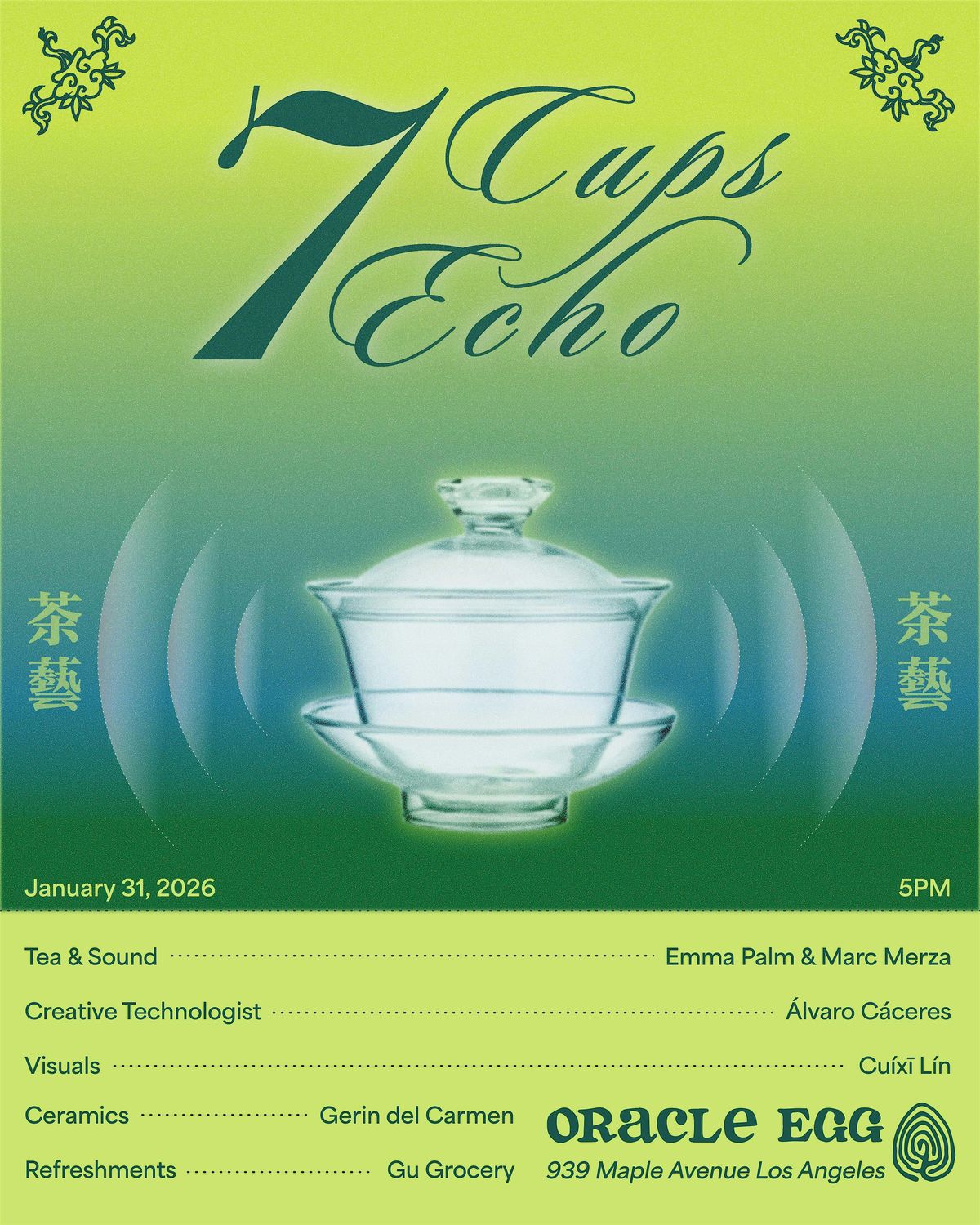 Conceptualized and composed by Marc Merza and Emma Palm with creative technologist Álvaro Cáceres and live projections by Cuìxī Lín. Custom ceramic tea set made by Gerin del Carmen and snacks from Gu Grocery.