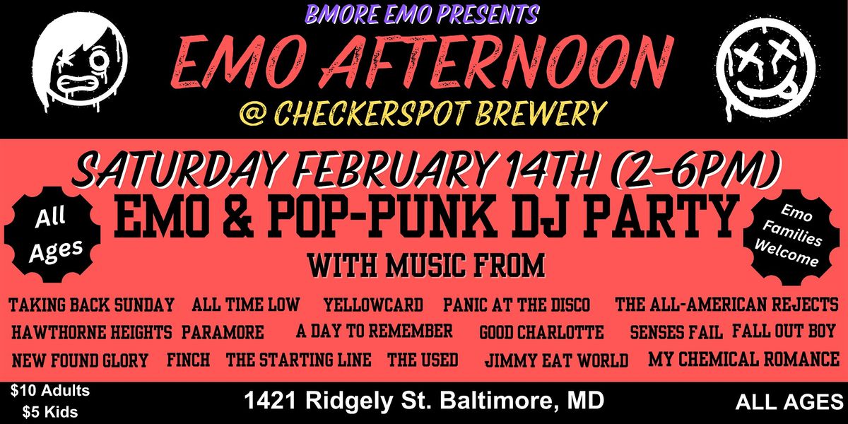 So whether you want an afternoon to enjoy your favorite emo and pop-punk bands or if you just want to rock out with the entire fam, join us at Checkspot Brewing for Emo Afternoon!