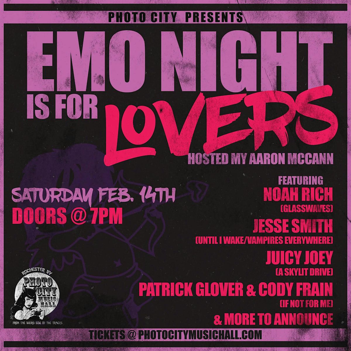 This night is packed with emo, pop-punk, and post-hardcore bangers spun by members from some of your favorite bands & crew. Sing loud, scream along, and let every nostalgic anthem fuel your night — get ready for the ultimate Valentine's Day throwback to the early 2000s when pop-punk, emo, and post-hardcore ruled your playlists