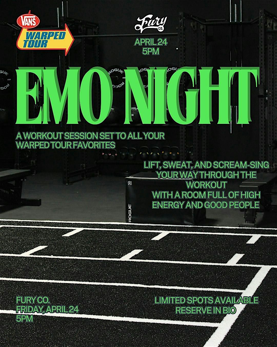A full-body strength workout with warped tour energy. Good music, loud energy, and a workout that actually hits.