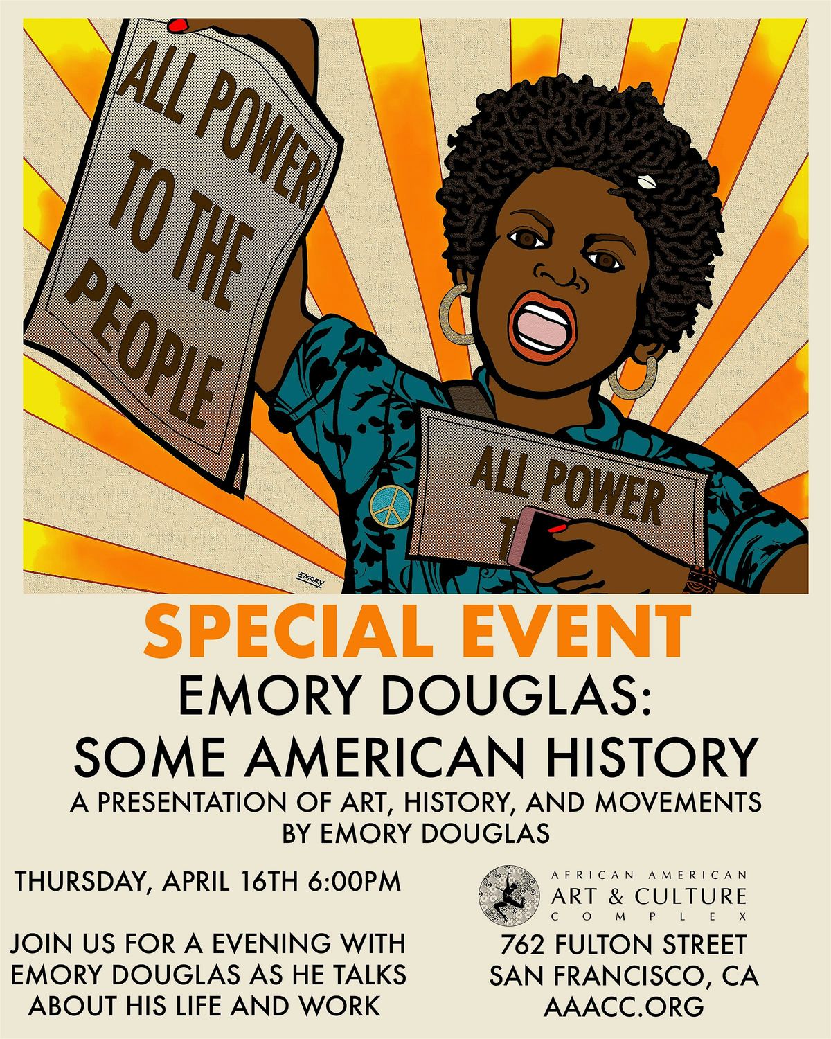 Emory Douglas’ Some American History presentation is a special look into the work of Emory Douglas that traces his art alongside the politics, movements, and communities that drove it. This is a rare opportunity to hear from Emory Douglas himself about his revolutionary artwork spanning his work with the Black Panther Party to today.