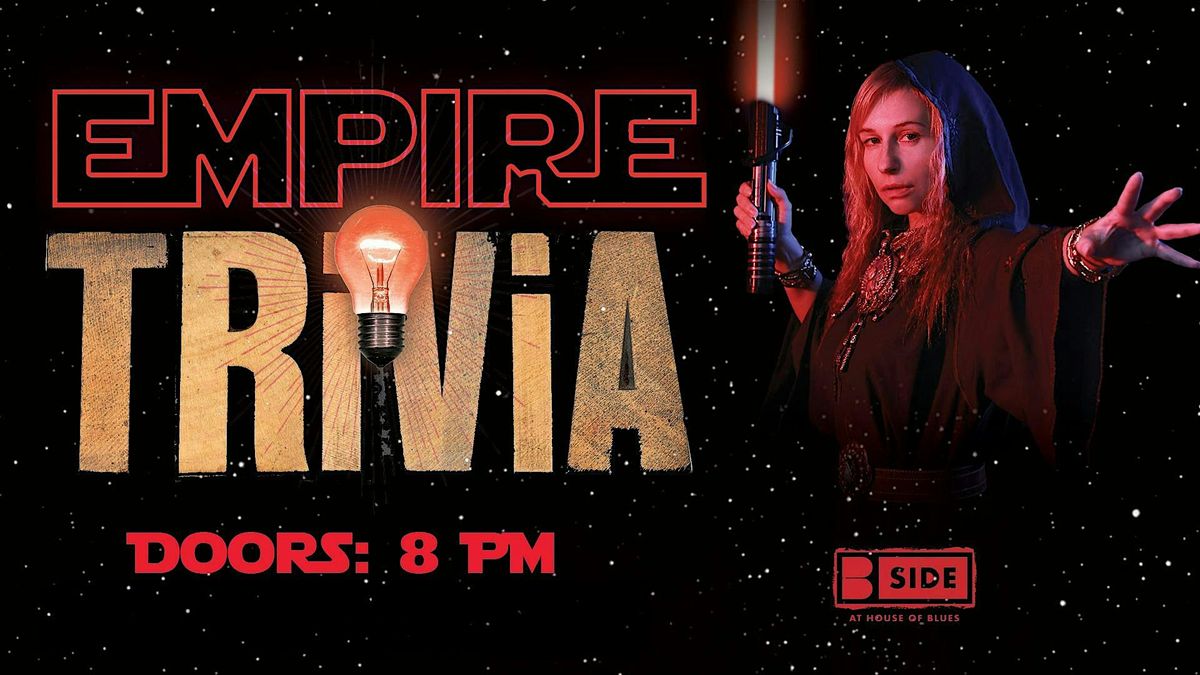 Step into a galaxy of power, strategy, and legendary battles, bring your smartest friends, and get ready for a high-energy night of trivia at B-Side inside House of Blues Las Vegas. Join us from 8:00 PM β 10:00 PM for an evening dedicated to one of the most iconic space empires ever imagined.