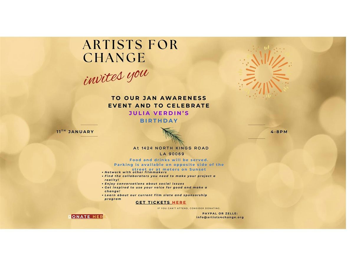 Hosted at the home of Artists for Change founder Julia Verdin, 1424 North Kings Road, LOS ANGELES, United States
