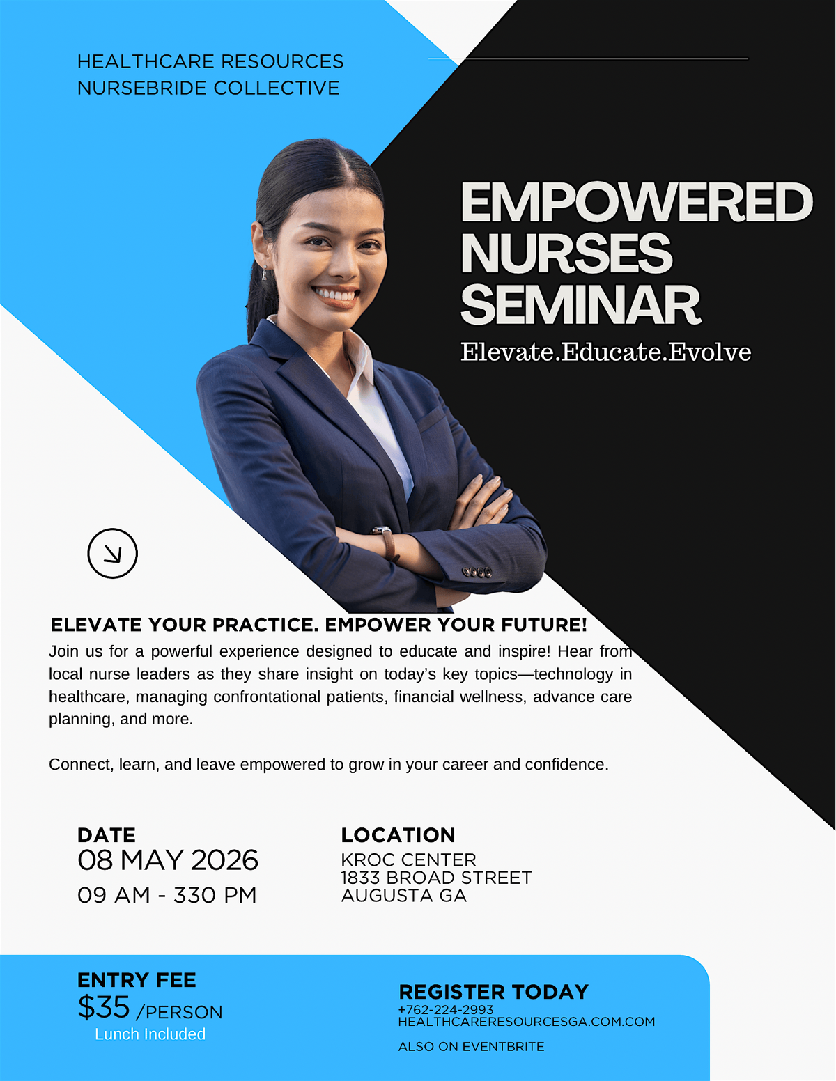 Join us for the Empowered Nurses Seminar, a dynamic and inspiring event designed for nursing students, active nurses, and retired nurses who are passionate about growth, connection, and impact in today’s evolving healthcare landscape.