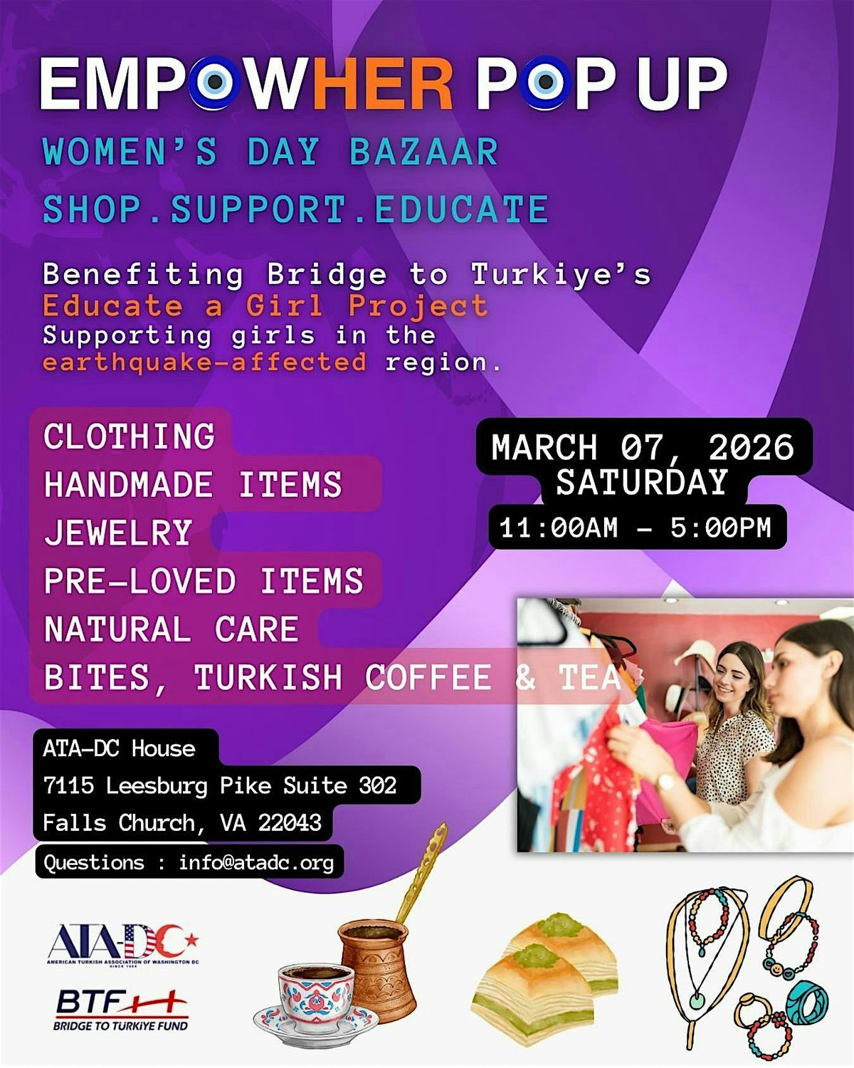We are hosting a special community event at the ATA-DC House to support a very important mission. All proceeds will benefit Bridge to Turkiye’s “Educate a Girl Project,” specifically supporting young girls in the earthquake-affected regions of Turkiye.