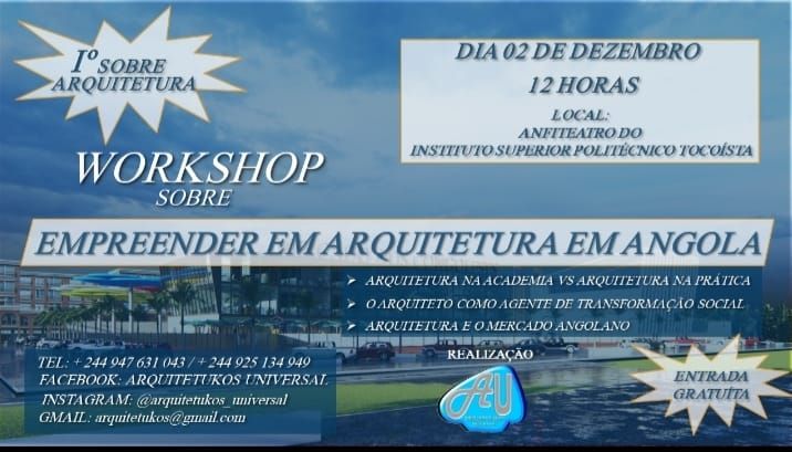 Evento 100% gratuito sobre empreender em Arquitetura em Angola.Evento para estudantes de Arquitetura, empreendedores e visionários.