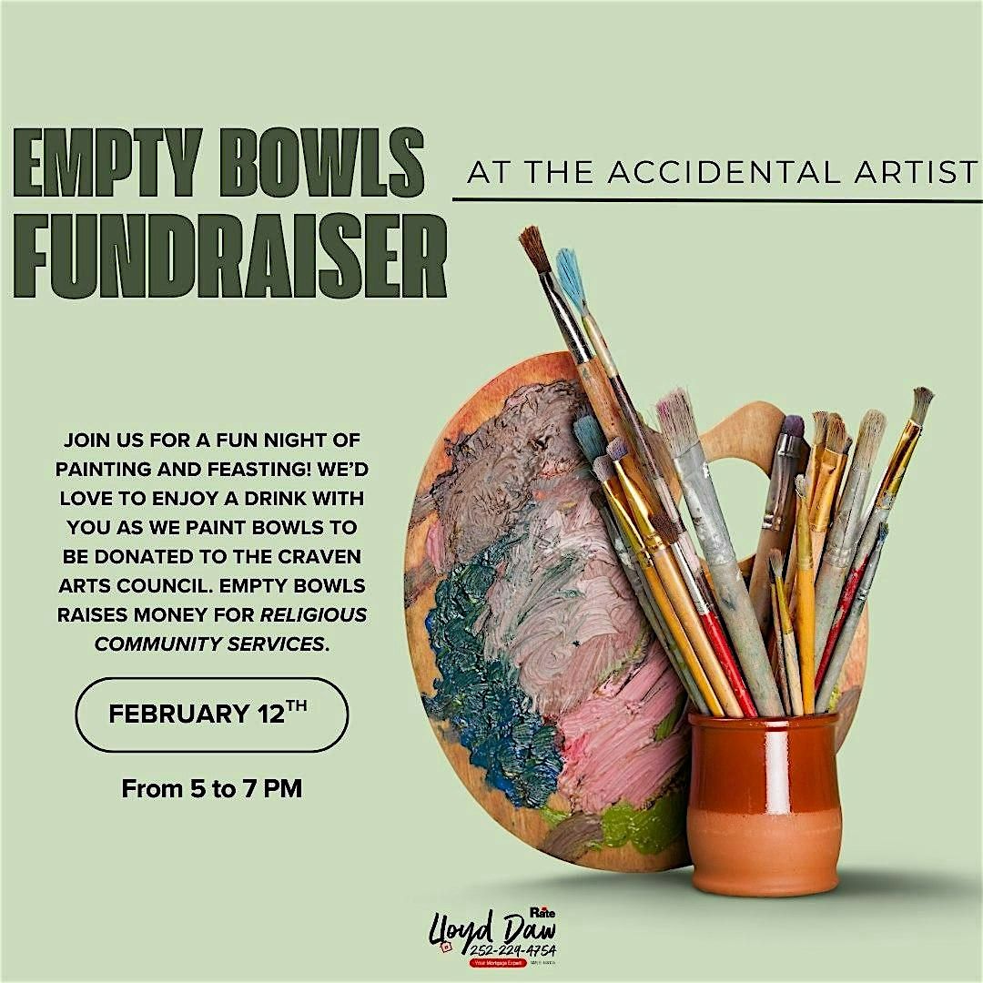 We'd love to have you join us at The Accidental Artist for our Empty Bowls fundraiser on February 12th from 5-7 PM. This will be a great time to mingle and create beautiful artwork for Empty Bowls - an organization that raises funds for Religious Community Services in the New Bern area. What a great way to serve our small community.
