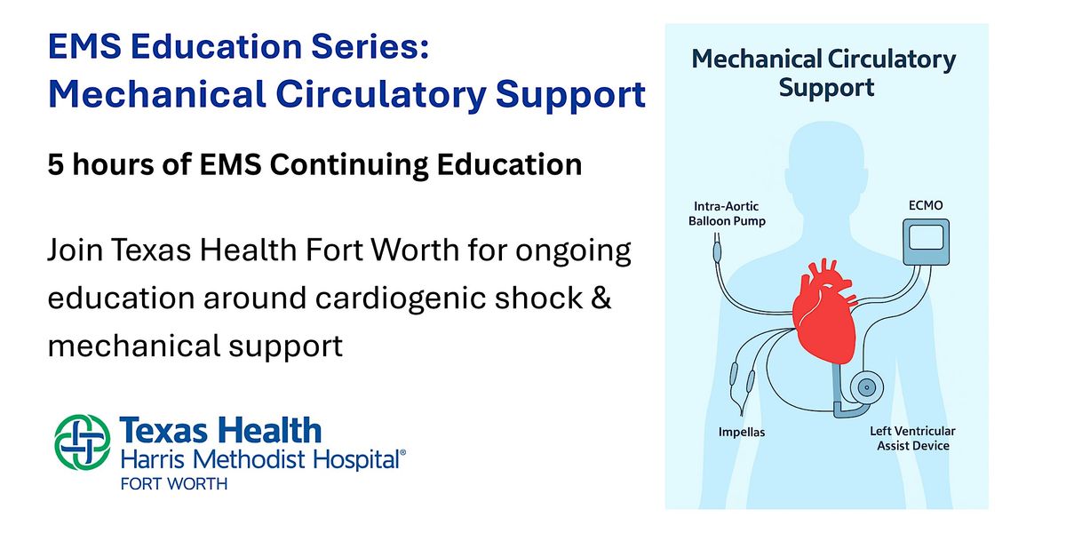 Join us for a focused educational session designed for EMS providers exploring the evolving landscape of cardiogenic shock and mechanical circulatory support. This event will introduce key concepts, clinical considerations, and transport implications for advanced cardiac interventions. Participants will gain foundational insights into device types, patient presentations, and EMS roles in supporting these critical care pathways.