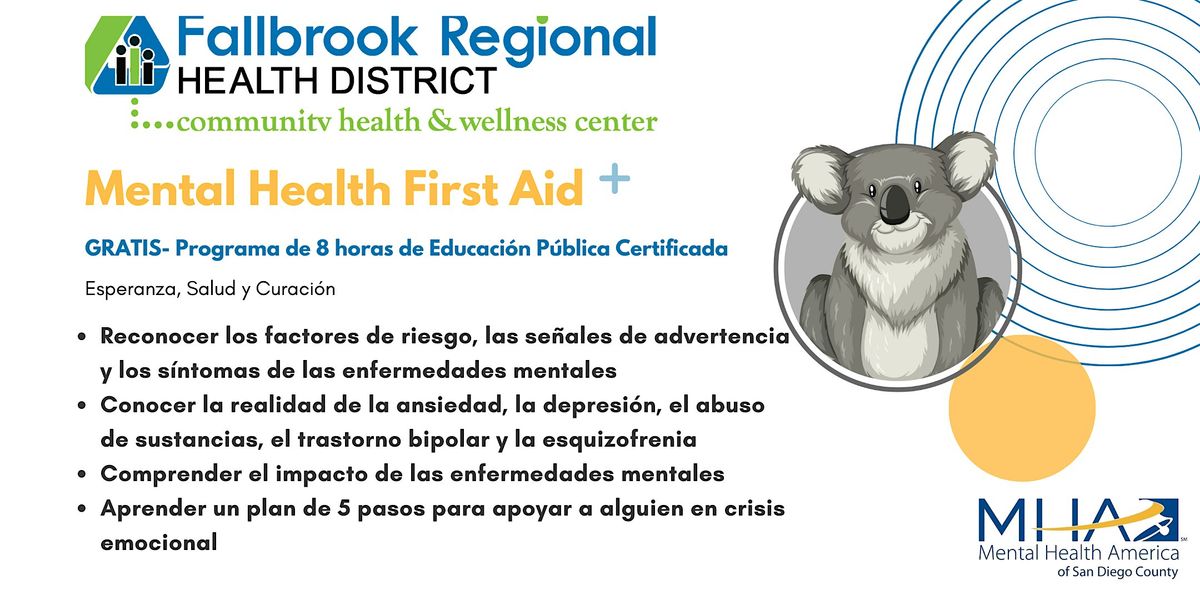 Certificación GRATUITA de 8 horas. Aprenda a reconocer los factores de riesgo, las señales de advertencia y los síntomas de la enfermedad mental y cómo USTED puede marcar la diferencia.