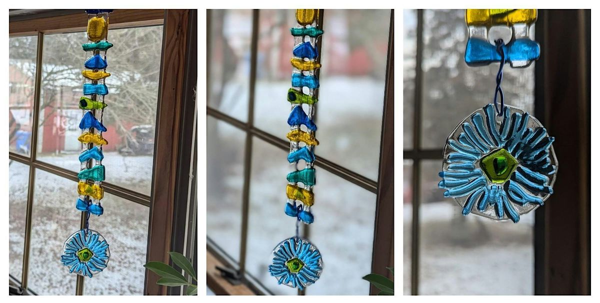 Please join us for this colorful and beautiful "Enchanting Colorwaves" workshop where we will create a beautiful hanging suncatcher. Approx size 15" long including the bottom piece. $42