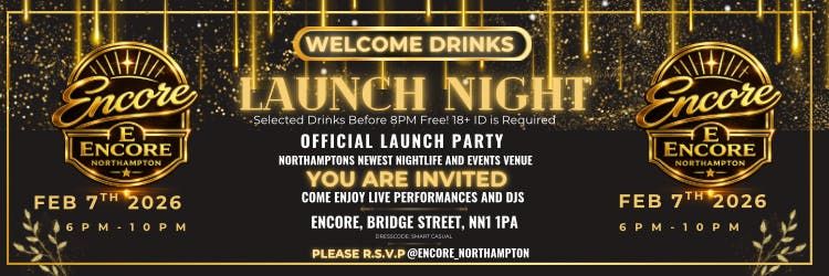 ENCORE LAUNCH PARTY – WELCOME DRINKS + LIVE PERFORMANCES (FREE TICKETS)Northampton, it’s time for something new.