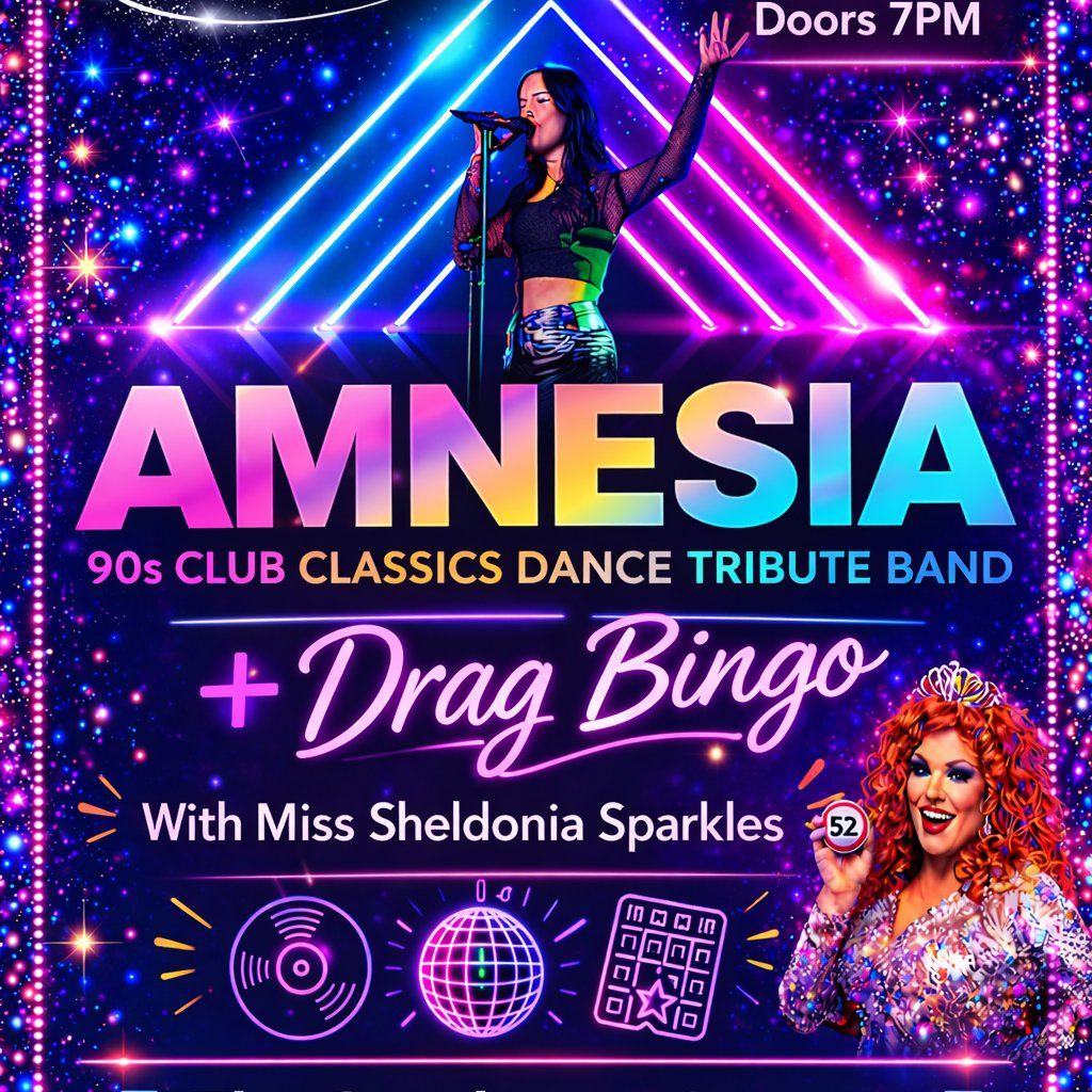 Amnesia Band headline with all the 90's Clubland Bangers you can think of played live. Drag Bingo from Sheldonia Sparkles to get the party startedMusic Genres : 1990s, Bounce, Disco, Disco House, Electro