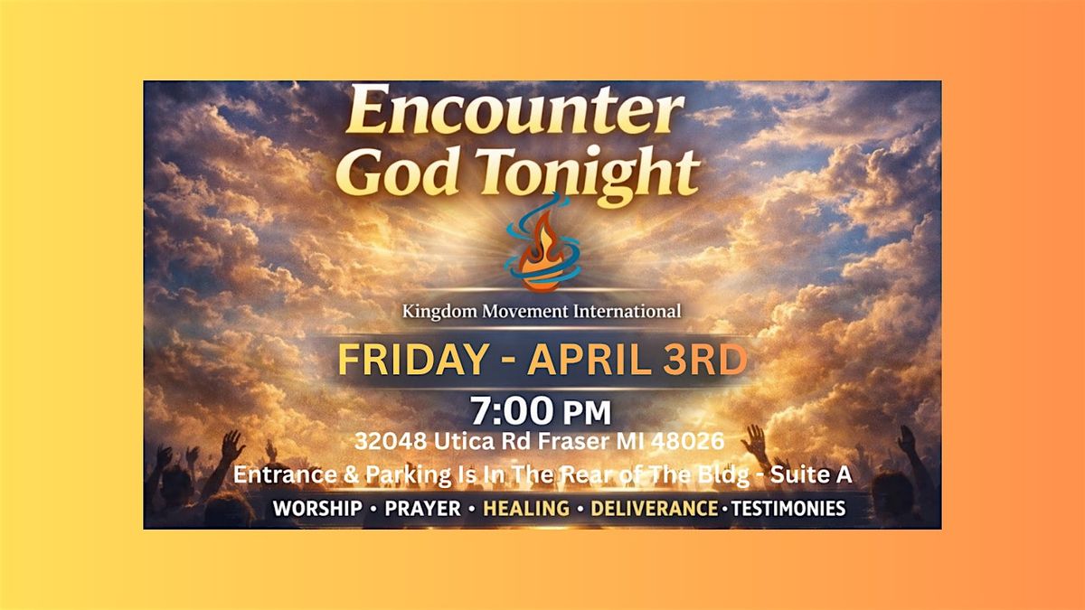 Come join us this Friday evening and experience the move of God through worship, prayer, teaching, healing, and deliverance.