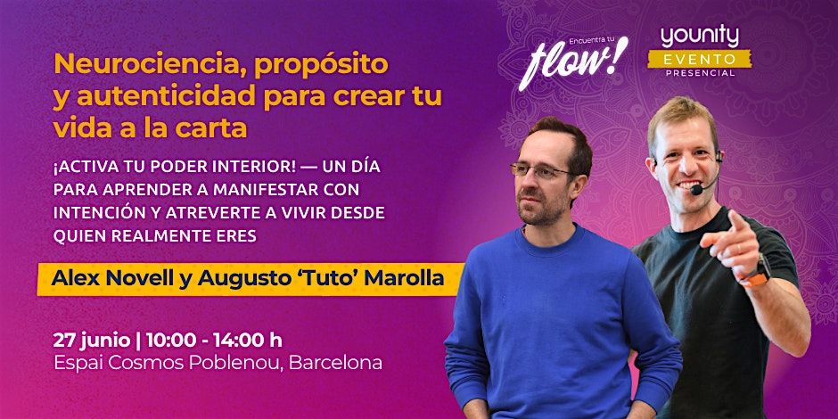 Un encuentro presencial con Alex Novell y Tuto Marolla donde la manifestación y la autenticidad dejan de ser conceptos y se convierten en experiencias vividas. Con Alex comprenderás por qué manifiestas lo que manifiestas —no lo que quieres— y saldrás con un mapa claro que une neurociencia, subconsciente y propósito en un sistema aplicable desde hoy mismo. Con Tuto conectarás con el fuego de tu autenticidad a través del movimiento, el breathwork y la meditación, y darás los primeros pasos reales hacia tu vida más potente y alineada.