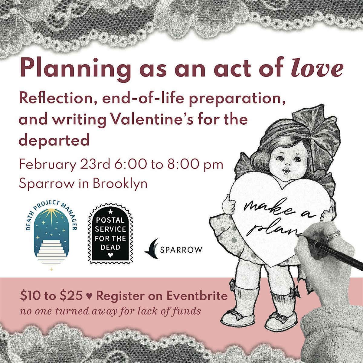 Join Death Project Manager and Postal Service for the Dead for an evening of end-of-life planning and reflection, and a discussion of planning as an act of love.