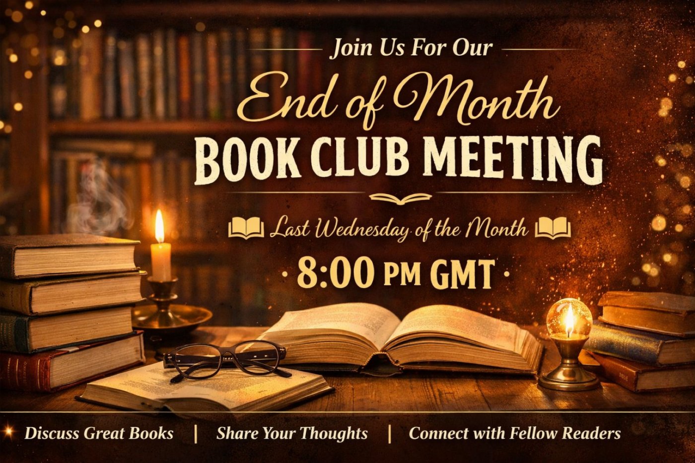 Join us for our monthly End of Month Book Club Meeting, where book lovers from around the world come together to discuss the month’s chosen read. Whether you’ve read every page or only managed a few chapters, all are welcome to share their thoughts, insights, and questions in a relaxed and engaging environment. Each month, we select a compelling book spanning genres such as fiction, non-fiction, mystery, fantasy, and more. The book selection is announced at the beginning of each month, giving you ample time to dive in and explore.