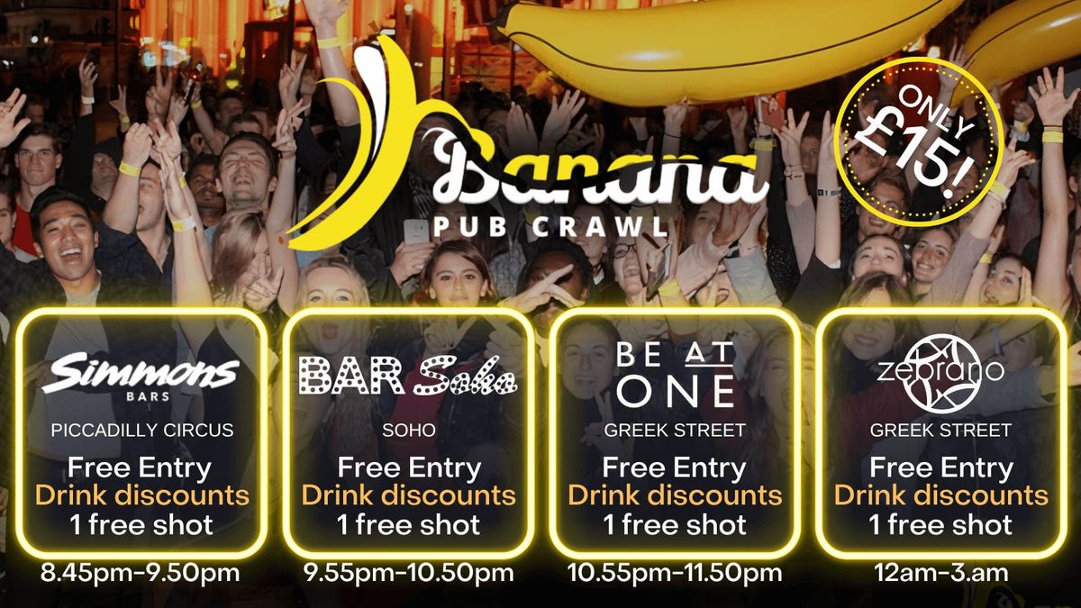 🍌 The Original Banana Pub Crawl: London's Top Night Out! 🕺Why settle for one party when you can conquer four?